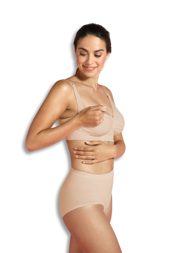 Ovo je vjerovatno najzdraviji grudnjak za dojenje IKADA NAPRAVLjEN! Ovaj grudnjak za trudnice i dojilje takođe preporučuju savjetnici za dojenje. Njegova CarriGel potpora podržava prirodne promjene u veličini i obliku vaših grudi bez nelagodnosti koju krute žice mogu da izazovu. Prilagođava se vašem promjenljivom obliku tijela, kako tokom trudnoće tako i tokom dojenja. Lagane kopče za dojenje jednom rukom otkrivaju cijelu dojku u toku dojenja; uz maksimiziranje kontakta koža na kožu između vas i vaše bebe. Ovaj grudnjak je izrađen od svilenkasto-mekanog i prozračnog mikrovlakna i u kombinaciji sa gelom daje nevjerovatnu udobnost.